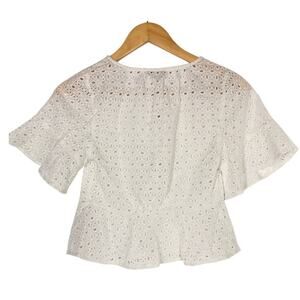 Madewell Tie-Front Top Embroidered Eyelet Flutter Sleeves Soft White NWT XXS