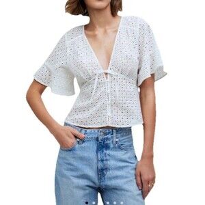 Madewell Tie-Front Top in Eyelet White Size XL Beachy Boho Cotton Vacation