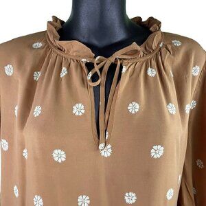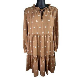 Madewell Tie-Neck Tiered Mini Babydoll Dress in Bloom Dot Tan Brown Women’s M