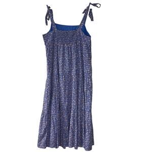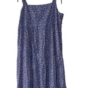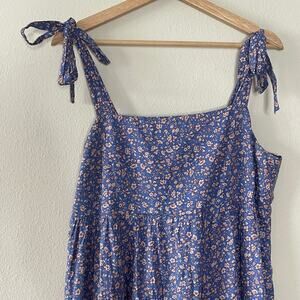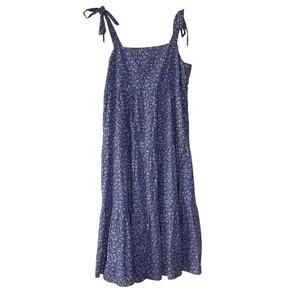 Madewell Tie-Strap Tiered Midi Dress in Summer Vines Size L. In a red-white-and-blue floral print, this vintage-y midi