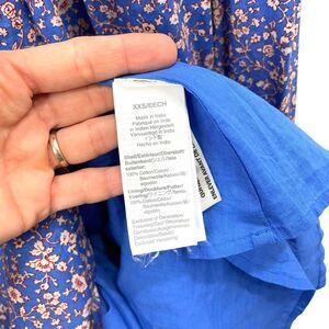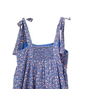 In a red-white-and-blue floral print, this vintage-y midi dress has voluminous tiers and straps that tie at the top for an adjustable fit. Smocking in back keeps things feeling extra comfy.