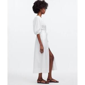 Madewell Tie-Waist Button-Front Midi Dress in Poplin XS