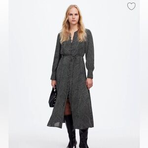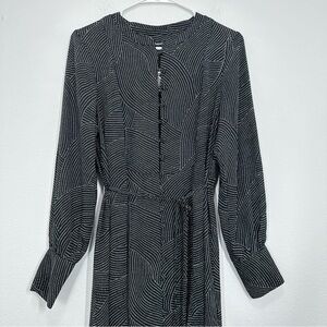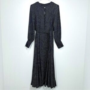 This Madewell gown features a sophisticated pleated design with a tie front, perfect for work or casual occasions. The long bishop sleeves and crew neck add a touch of elegance, while the flowing silhouette ensures comfort and style.
