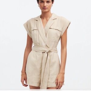 Madewell Tie-Waist Muscle Tank Romper in Summer Dune Size 00 NWT