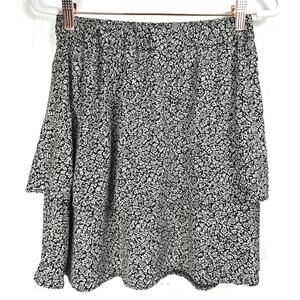 Featuring a chic black and white floral print, elastic waistband, and flowy tiered design, this skirt offers comfort and style. Perfect for any occasion, this versatile piece is a trendy addition to your collection. Stand out with this on-trend mini skirt and showcase your unique sense of style with confidence.