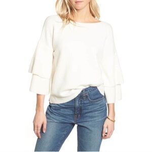 Madewell Ivory Boatneck Tiered Ruffle Sleeve Fuzzy Sweater Size XXS