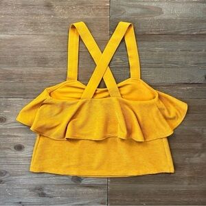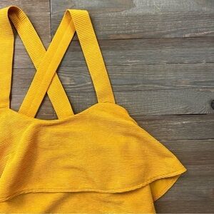 Madewell Tiered Tank in Tungsten Glow. Mustard yellow. Flouncy crossback tank. Loose fit. Thick shoulder straps. Excellent condition. Size XS