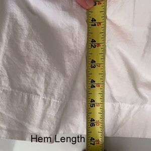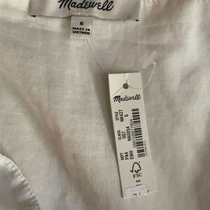 Beautiful white dress features a tiered bottom, button front, wide shoulder straps, sweetheart neck line, lined.