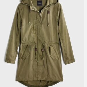 Madewell Tilden classic military style hooded anorak utility jacket army olive green. Size small. Longer length than a short jacket.