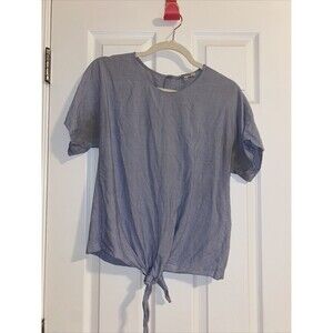 Madewell Top Blue White Stripe Button Back Tie Tee Soft Twilight Small G7350