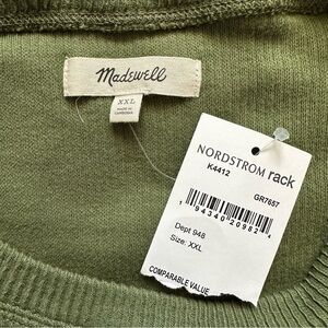 Madewell Top Elwood Knot Front Long Sleeve Jacquard Palm Tree Green XXL NWOT