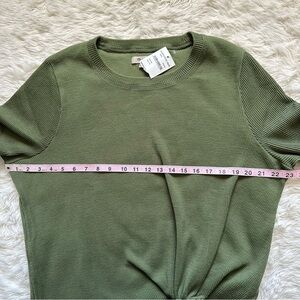 “Slip into a neatly untucked look with this knotted-front top that's cut from a softly ribbed cotton blend.