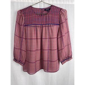 Madewell Top Silk Blouse Retrogrid Geometric Artsy Retro Unique Maximalist Wacky