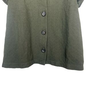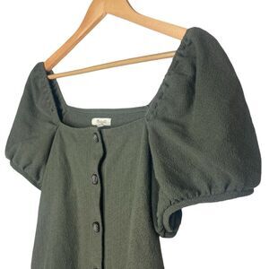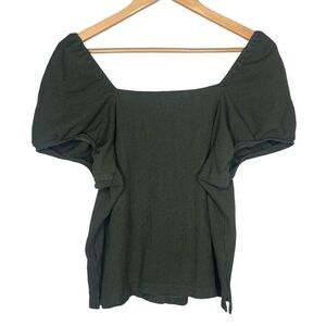 Madewell Top Size L Jacquard Square Neck Puff Sleeve Blouse Green NA409 Buttons