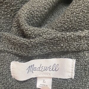 This Madewell top in size L features a stylish square neckline and short puff sleeves, perfect for a casual or travel occasion. The green color and button closure add a touch of sophistication to this lightweight and breathable cotton blend material. It is machine washable and suitable for summer, fall, or spring seasons. The blouse has a regular fit and is suitable for women, with a solid pattern and accents that give it a bohemian, farmhouse, and contemporary feel. It is perfect for brunch, picnic, or normcore themes, and has been crafted in Indonesia.