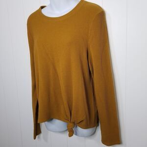 Madewell Top Size Medium Crewneck Front Tie Long Sleeve Golden Mustard Yellow