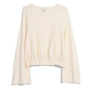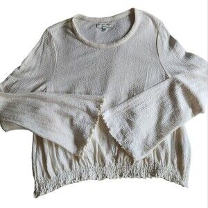 Madewell Top Textured Crinkle Cotton Fairy Bell Sleeve Boho Indie White XL