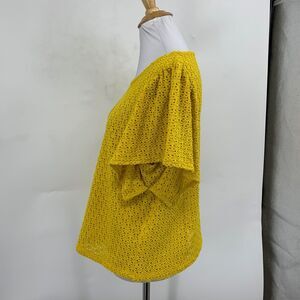 MADEWELL TOP WOMENS L LARGE PAPAYA TEXTURE & THREAD EYELET FLUTTER OPEN STITCH