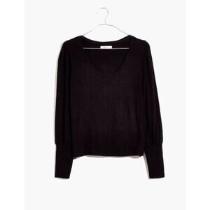 Madewell Top Women's Medium Black Puff Long Sleeve Scoopneck Blouse Soft