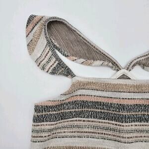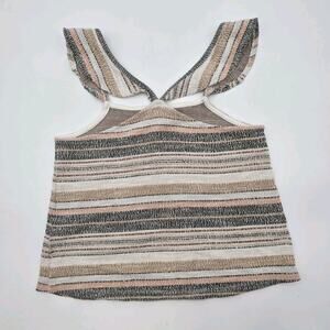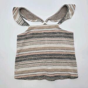 Madewell Top Womens Medium Tan Gray Tank Square Neck Textured Beige Ruffle