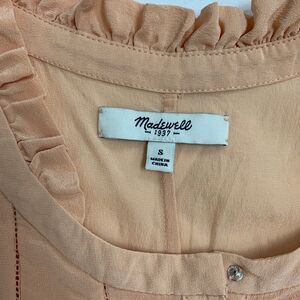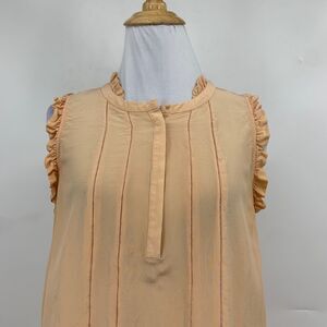 Madewell Top Womens S Small Peach Silk Sheer Pintuck Sleeveless Ruffle Drop Cut