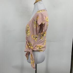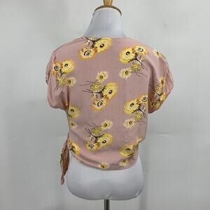 MADEWELL TOP WOMENS S SMALL TWIGGY WISTERIA DOVE WRAP FLORAL SHORT SLEEVE CROP