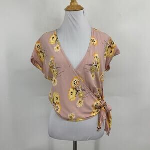Madewell Top Womens S Small Twiggy Wisteria Dove Wrap Floral Short Sleeve Crop