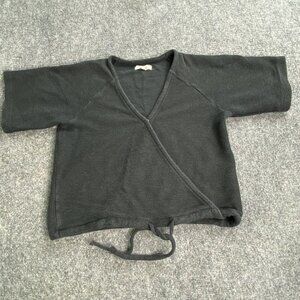 Madewell Top Womens Small Black Drapey Ottoman Jacquard Faux Wrap Drawstring