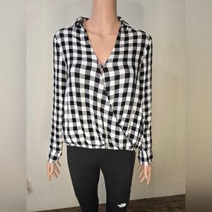Madewell Top Womens Small Black White Buffalo Check Plaid Wrap Front Shirt