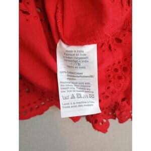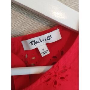 Madewell Top Women's Small Red Scalloped Eyelet Keyhole Peplum Back Top Ties