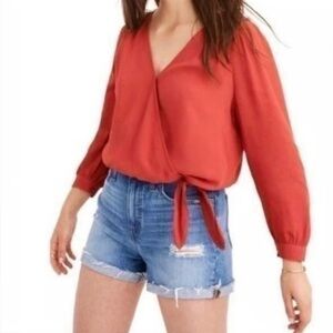 Madewell | Tops | Madewell Silk Sash Tie Front Wrap Coral Crop Top