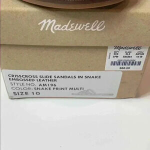 Madewell Tracie Crisscross Snake Slide Sandal Size 10 NEW