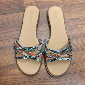 Madewell Tracie Snake Embossed Multi- Color Leather Slide Sandals Sz 9.5