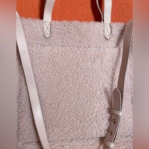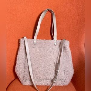 Madewell Transport M Shearling Leather Tote Pink Teddy Womens Zip Crossbody