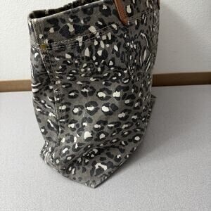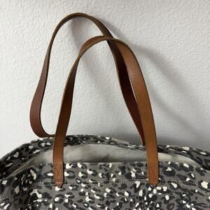 Madewell Transport Tote Bag Multi Leopard Canvas Leather Handles Shoulder 18x14