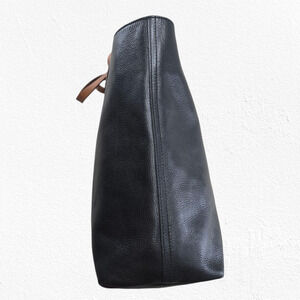 Madewell Transport Zip Top Tote Black Pebbled Leather Bag Tan Handles Large