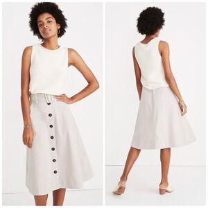 Madewell Trench Belted Circle Skirt with Down Buttons in White Size 4