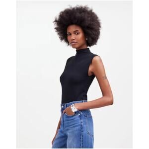 Madewell True Black Funnelneck Cropped Muscle Tee Size XL