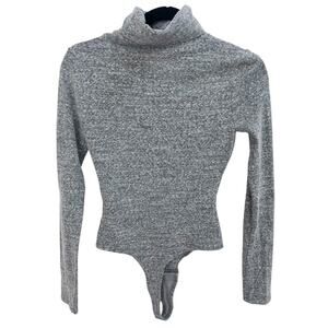 Madewell Turtleneck Bodysuit Long Slv Womens Sz S Heather Smoke Grey Fitted Top