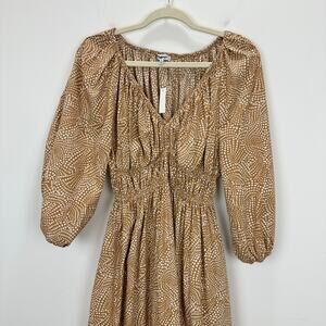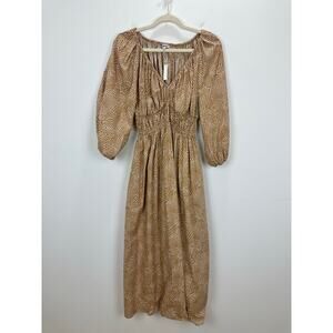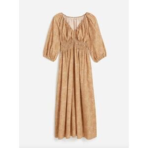 Madewell V Neck Balloon Sleeve Maxi Dress Spiral Dot Tan Smocked Boho US 00 NWT