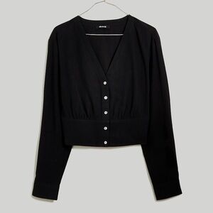 Made of our supersoft and drapey Lusterweave TENCEL™ lyocell-blend twill, this slightly cropped button-up shirt has a V-neckline, slightly dropped shoulders and gentle gathering in front. It's a versatile banded style that can do the office-to-date-night thing.