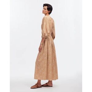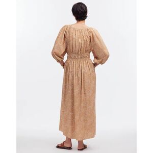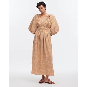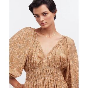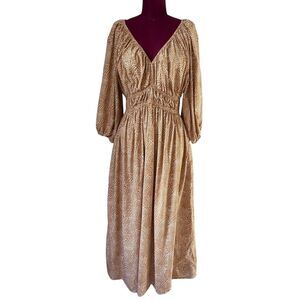 Madewell V-Neck Balloon-Sleeve Maxi Dress size 8 Spiral Dot Khaki Tan Cream
