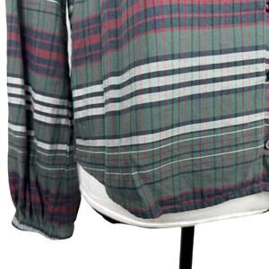 Madewell V-Neck Button Down Shirt in Pineview Plaid Green Flannel Top