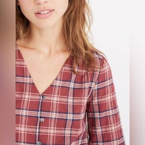 Madewell V-Neck Button-Down Shirt in Stratfield Plaid Size Small