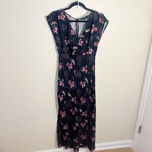 Madewell V-Neck Floral Midi Dress True Black Size 0 New Silk Blend