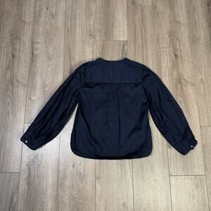 Madewell Women’s Size XS Deep Indigo Blue V-Neck Long-Sleeve Top NS437 – 98% Cotton/2% Elastane, US Women’s Extra Small, Deep Indigo Blue in color, Stretch Cotton Sateen Fabric, V-Neck design with Banded Collar, Long Bracelet-Length Sleeves, Regular Fit, Soft, Comfortable, Chic, Romantic, Casual, Everyday wear, Versatile, Timeless style, Feminine.