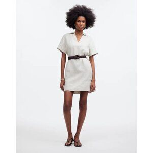 Madewell V-Neck Mini Dress in 100% Linen in Natural Undyed