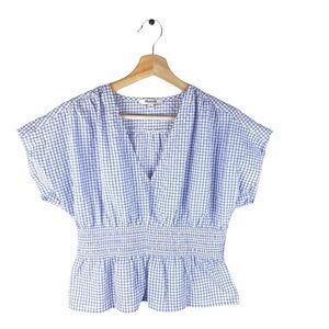 Madewell V-Neck Smocked-Waist Top in Gingham Seersucker Small