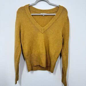 Madewell V-Neck Sweater Coziest Yarn Heather Mustard Saffron Golden Yellow XS