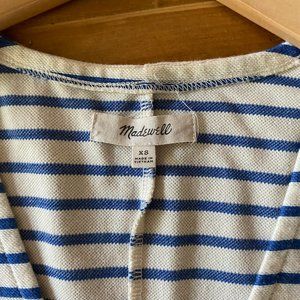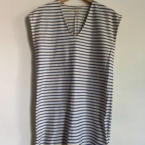 Madewell Vacances Blue & Cream Striped Shift Dress V Neck
